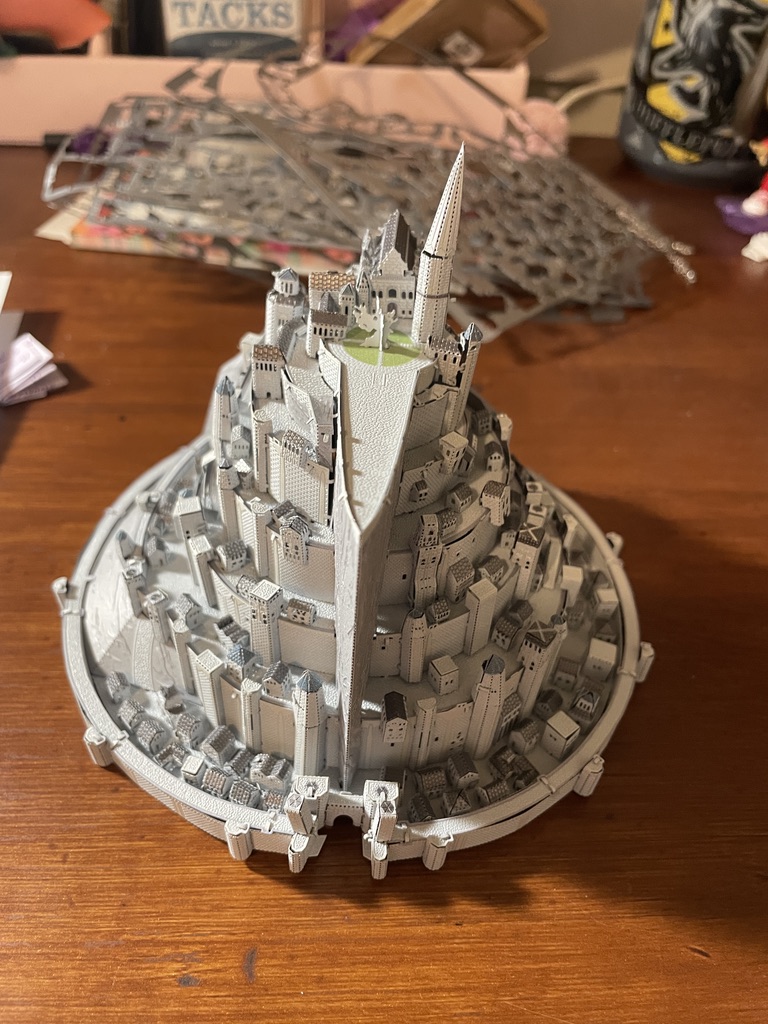 I also built this metal model of Minas Tirith, the capital city of Gondor, as visualized in the Lord of the Rings films last week. Look at all those tiny houses!