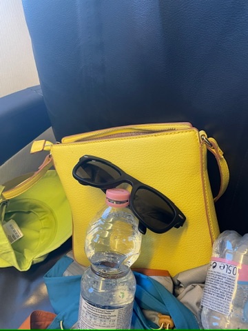 We all took a while to recover and I put my bag in the seat where T would sit, and the silliest joke came up in my brain, but I wasn’t sure if it was too soon or not. I nudged Z and pointed to the bag and said, “Look, it’s Bagvati!” (A reference to the very expensive bag that played an important role in the movie we had watched the night before.) He looked at me for a second and dug in his bag and handed me his sunglasses, so she was all set. Here she is pictured below: